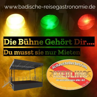 Aufgebaut in einer Stunde, Bühnenmaß 5,95 x 4,56 m, 27qm, überdacht.