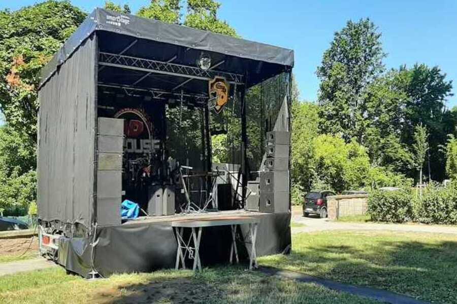 Unsere Bühne ist im Handumdrehen aufgebaut, und bietet viel Platz.